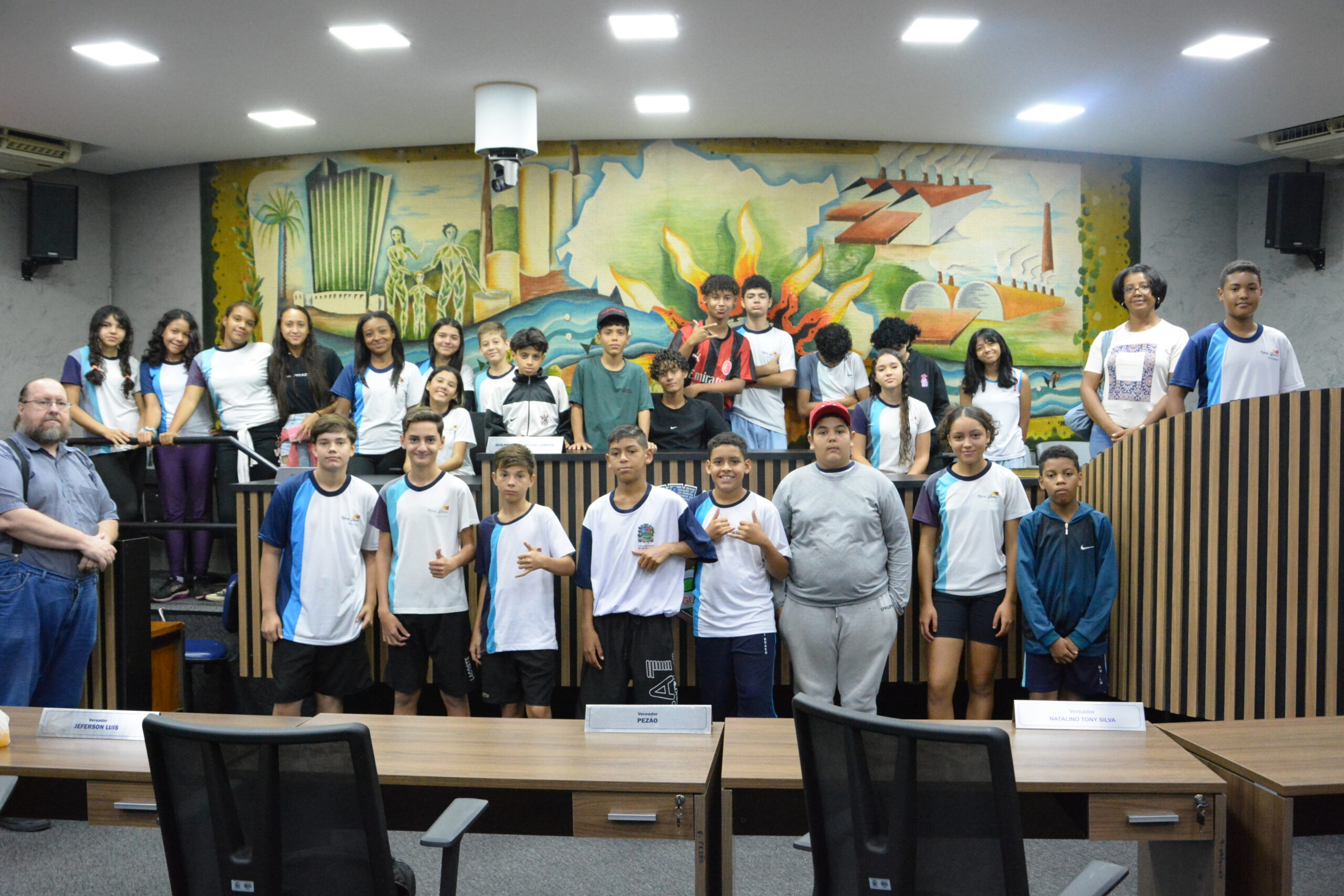 Ao longo da programação, os alunos também tiveram acesso a informações sobre o processo de elaboração de leis, o funcionamento das sessões plenárias e o papel dos vereadores na organização e no desenvolvimento do município.